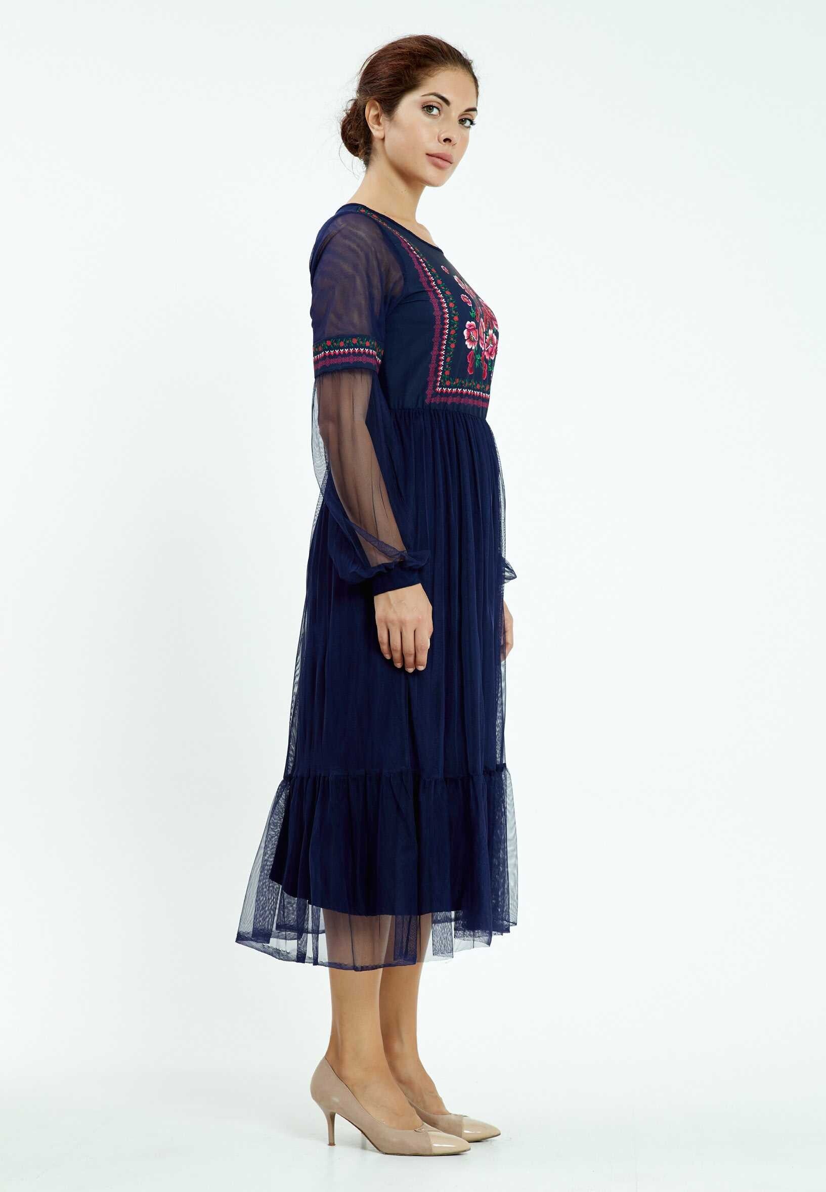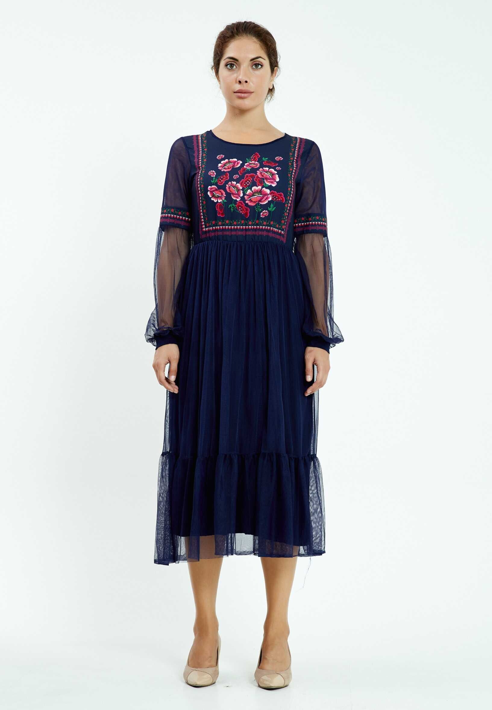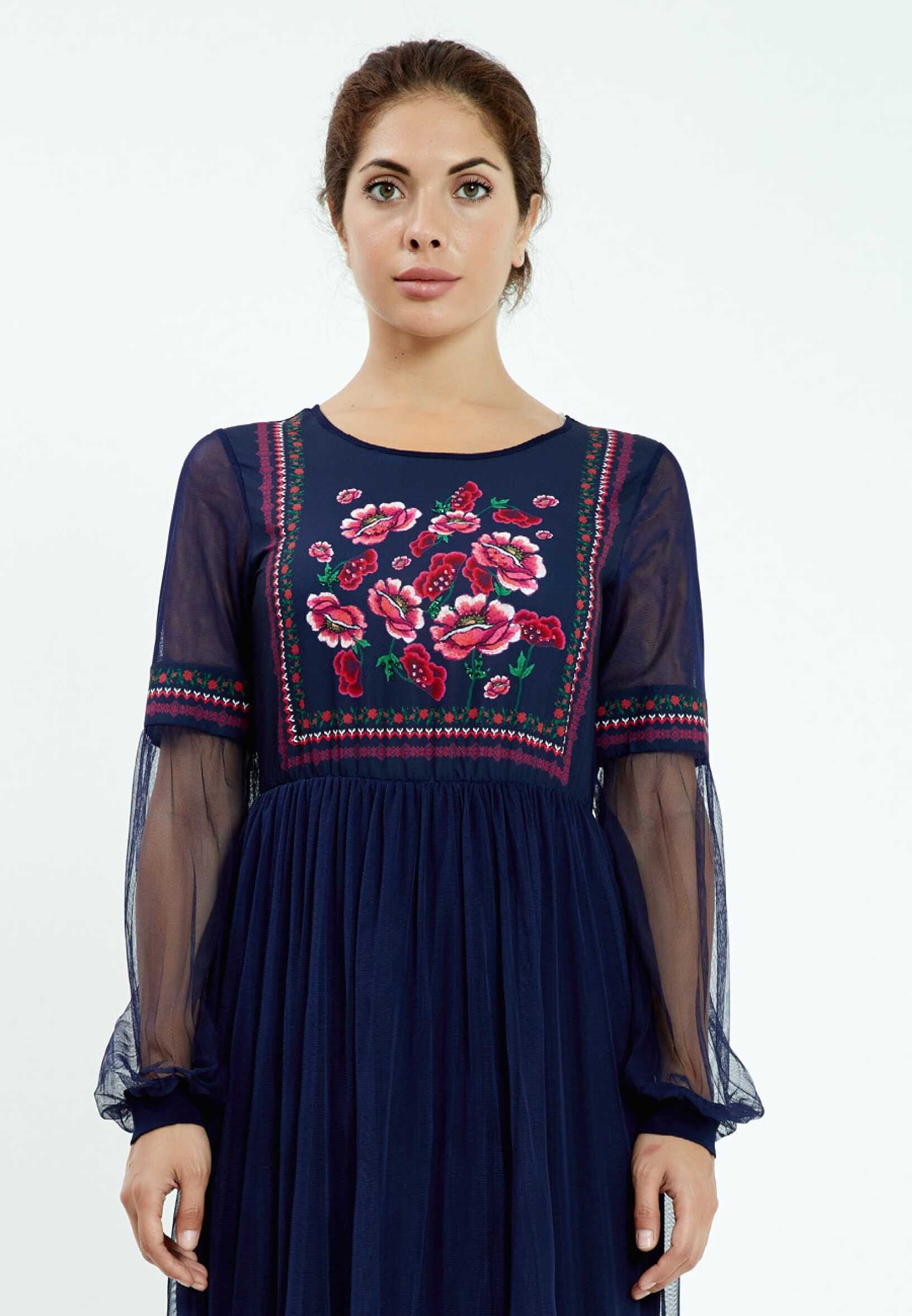 Luchtige jurk met doorschijnende mouwen en bloemprint